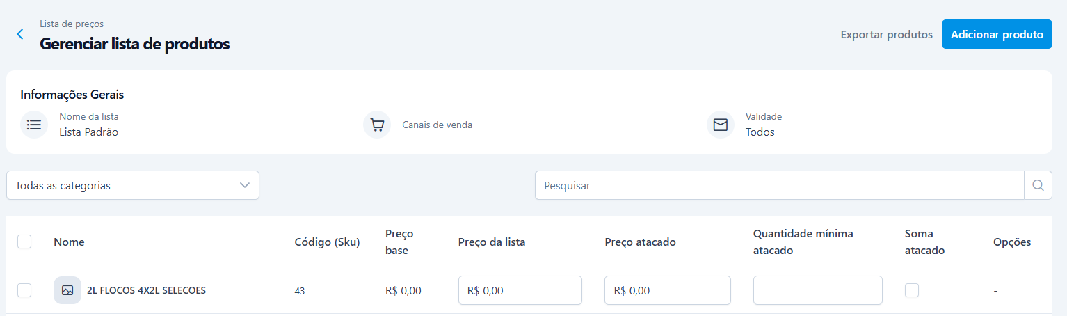 2. Posso atualizar os preços de uma lista em massa? Sim. A funcionalidade de Atualização em Lote (Edição em Lote) está disponível e funcional para listas de preços. Isso é útil para aplicar reajustes gerais sem precisar abrir produto por produto.