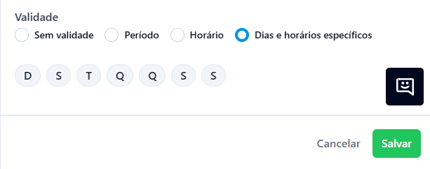 4. Configure a Validade e Horários (Opcional) Se esta for uma lista promocional (ex: Happy Hour), defina os dias da semana e os horários de início e fim.